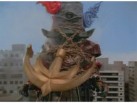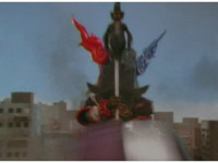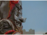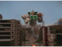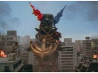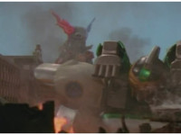 Kongazord Striker charges forth, eyes flashing, before kicking Armadillozord, sending him flying into Tombstone Org's spear, where he sticks to it, until the Org tosses the Zord back at the Kongazord, spark bursting it into falling over and crushing a building beneath it.. Tombstone Org laughs as the Kongazord remains down. |