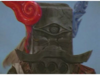 Tombstone Org opens his eye and his antler-cuffs spark burst. |