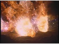 Crack in the ground spreads open, releasing a fireball, shown from within the crack. |
