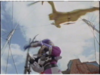 Soul Bird flies around, and merges into Wild Force Megazord's back. |