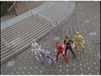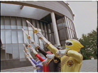Blue & Yellow pose, Team Carnival recovers and runs away, prompting the Rangers to give chase, following them to a near area. |