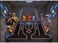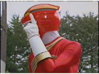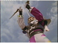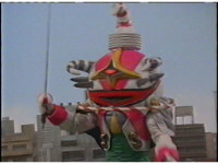 Juggelo towers gigantically over us, the Rangers rush in, Blue talking, then Red responds, before Blue leads the team in raising Sabers and summoning. |