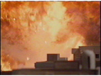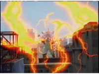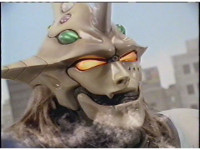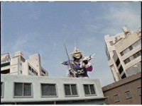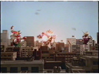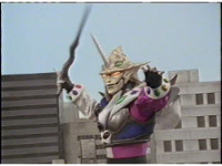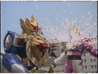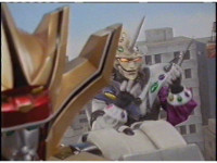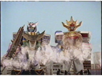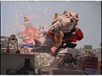Ancient Master Org blasts Animus Megazord, until it falls over and explodes. |