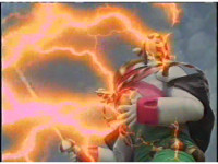 Blue & Yellow switch weapons, and stand on top of each other, puzzling Juggelo & Jindrax, before they each leap forth and energy slash them cracklingly, until they burst and fall down. |