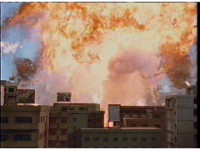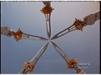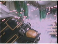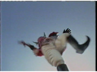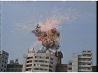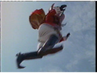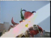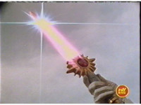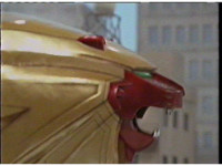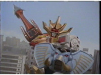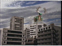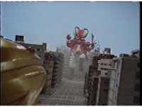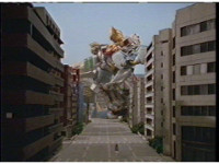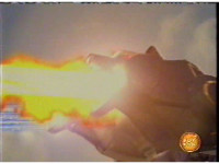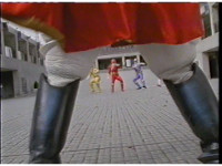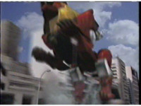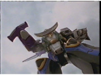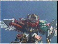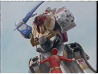 Recycled background footage, per source; Cuts follow-up of Megazord posing in the sky. |