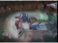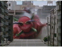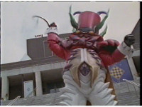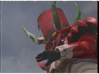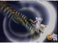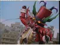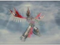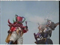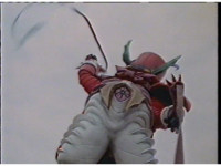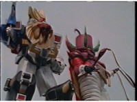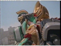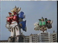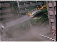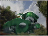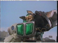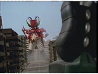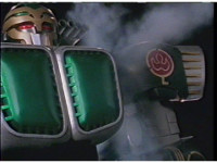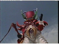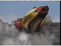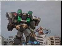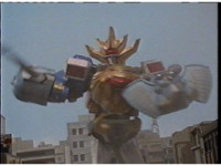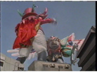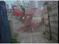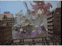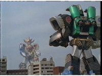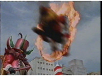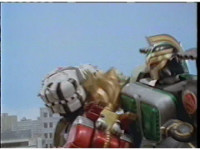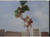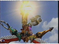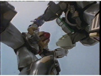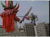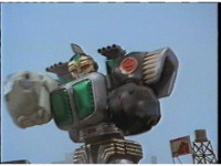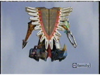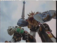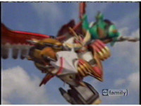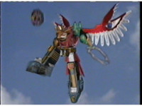 Wild Force Megazord is just about to strike the wind-swirled Kite. |