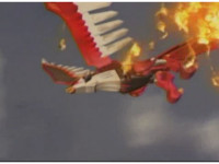 Isis Megazord kicks Armadillozord into the air, then flips over and performs the Final Strike on Armadillozord, kicking his glowing, flaming body forth. |