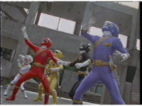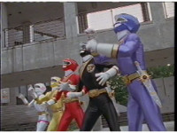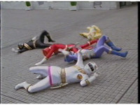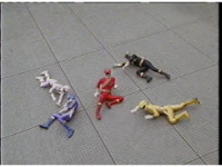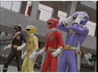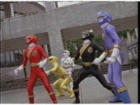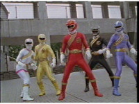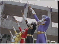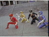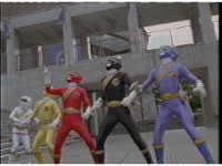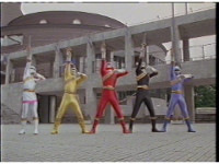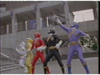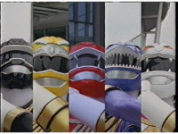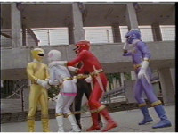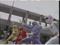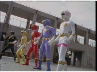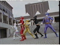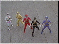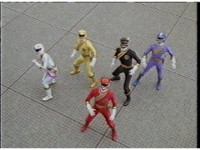 Cuts follow-up individual Ranger posings, then a fancy new group pose. |