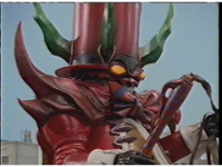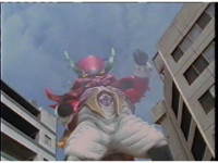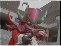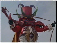 Lion Tamer Org grows gigantic, causing the Rangers to snap out of it and look upward, the Org then talking. |