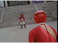 Red talks some more, Wild Force Megazord begins to lower its Saber, and the Rangers regroup. |