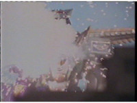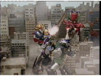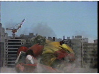 US replaces follow-up; then cuts follow-up of Red recovering, and shot of Megazords. |