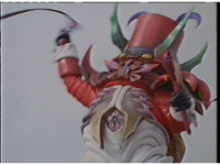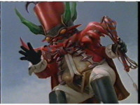 While holding Predazord captive, Lion Tamer Org talks then cracks his whip. |