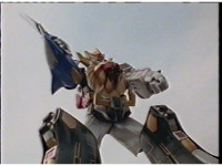 Wild Force Megazord punches its White Tiger fist forth again. |