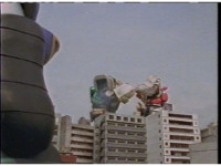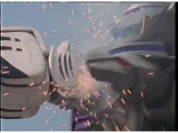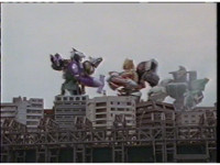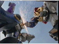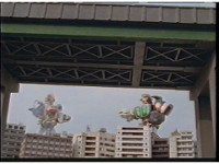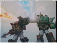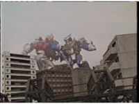 Recycled, shot 1 sped up, per source; cuts follow-up of Megazords facing each other. |