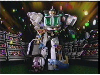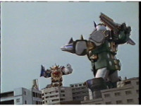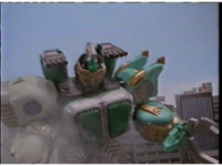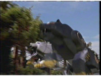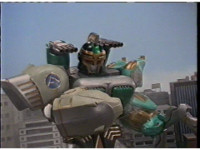 Wild Force Megazord turns sharply, as the Bearzords charge. |