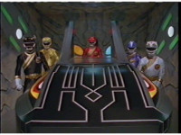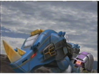 The Rangers get shaken up, as Wild Force Megazord Sword & Shield ceases spinning, leaving Kongazord Striker in a daze. |