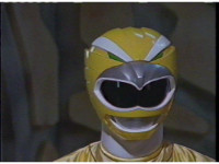 The Rangers cease chatting and face front, Yellow talking before rushing forth. |