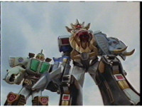 Wild Force Megazord turns its attention then poses battle ready, then zoom in on the Red Lion roaring. |
