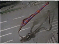 Lion Tamer Org talks across the city to Red Lion, Red talks up to him, he responds, then cracks the whip. |