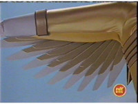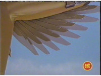 As the Rangers motion about, Soul Bird fires a beam of yellow swirling energy forth, which erupts as individual energy beams from each of the five Wildzord parts of the Wild Force Megazord. |