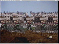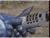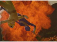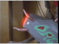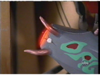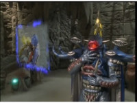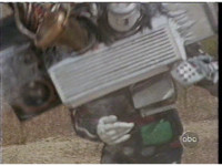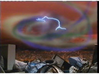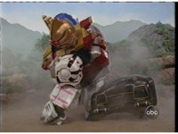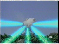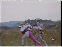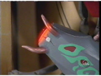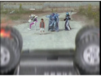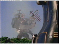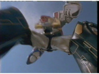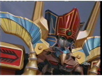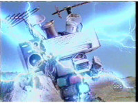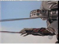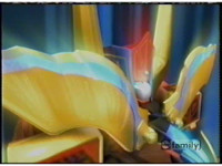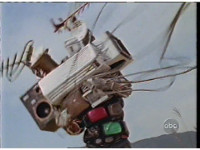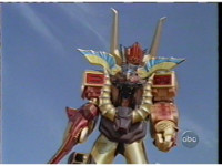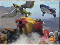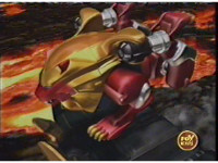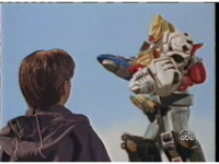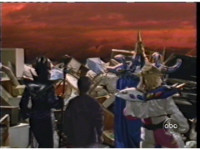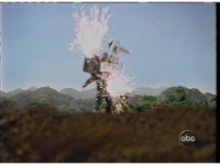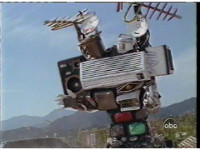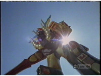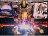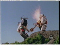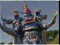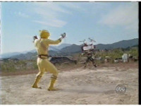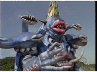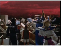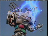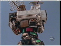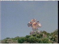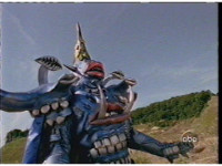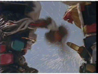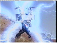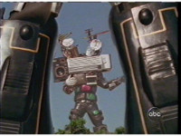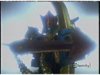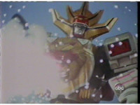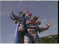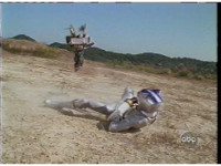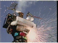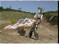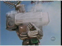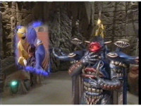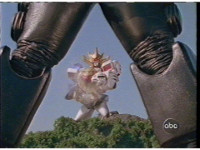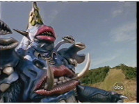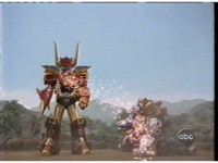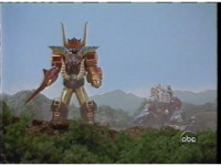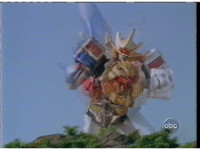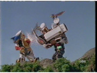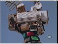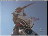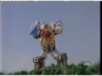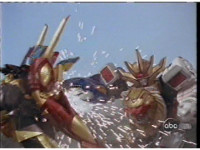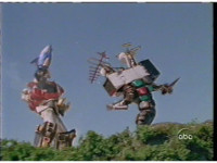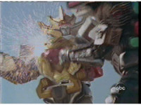 Monitor Org talks to Wild Force Megazord, then begins to crackle, the Megazord reacts, Red nod-talks, then the Org pulls out a saber, charges in, and sparkily slashes the Megazord repeatedly until it staggers back. |