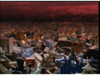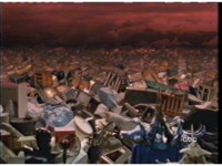 Cuts follow-up shot of a trashed TV, US replaces it with a shot of a typewriter. |