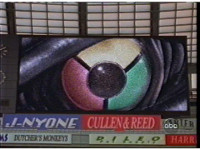 The Jumbotron image changes to Monitor Org's eye, the image expanding outward. |