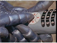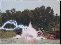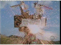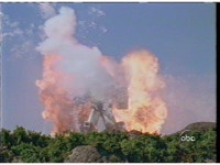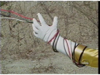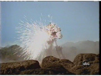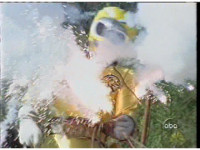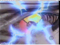 Red is looking to our right, then turns sharply, as Monitor Org gets up, presses his hand control, then fires electricity forth, bursting the Rangers. |
