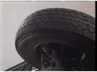 The SUV's tire spins in the air, while it remains suddenly stopped, the Rangers all gawking at it. |