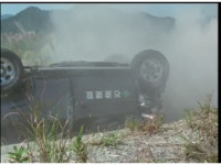 Blue, Yellow & Lunar Wolf roll into a ditch. |