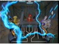 Lunar Wolf Lunar Breaks his three Crystals in Laser Pool while the Rangers Savage Slash the Jungle Sword. |
