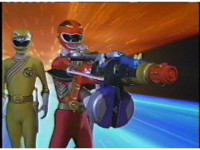 The Rangers fire a Savage Blast from the Jungle Blaster. |