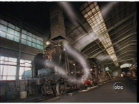 An Org Spirit floats into a depot and converges upon an old locomotive. |