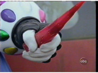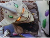 Locomotive Org spark and smoke bursts, then collapses onto Jindrax, exploding massively, sending Jindrax flying and rolling away, where he talks, then talks to Toxica's crackling, glowing horn.The Rangers watch as Jindrax gets up, pulls out Toxica's wand and aims it forth. |