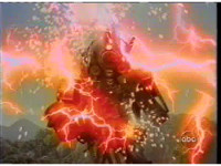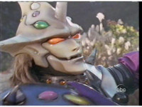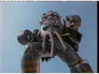 Jindrax talks to himself some more, agonizing over the decision he has to make. Locomotive Org spews fire forth between the Rangers, bursting them. Jindrax talks to himself yet again, then grips Toxica's horn and talks at it. |