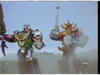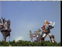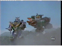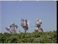 Shot 2 is recycled, per source; cuts follow-up of two Megazords facing Org. |