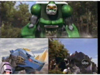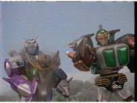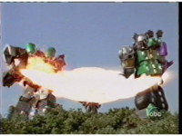 Recycled, mirror-flipped, per source; cuts follow-ups of each Zord attacking the Org. |