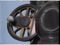 Locomotive Org turns, talks forth and gestures, then spews steam. |