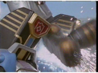 Isis Megazord Predator Mode suddenly charges forth, wings gleaming, right at the Org, the Rangers gripping their Sabers and talking, as the Megazord fires a Crescent Boomerang forth, and uses its whole body to drive it into Locomotive Org, exploding him massively, while the Megazord passes through it easily. Each Ranger gawks, then celebrates, while the Isis Megazord Predator Mode poses triumphant. |