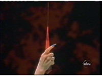 Toxica's horn lowers on a string into the Spirit World, the fishing reel spinning. |