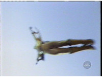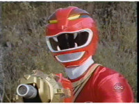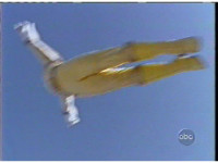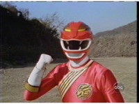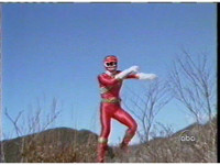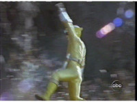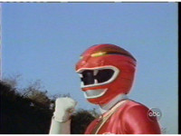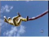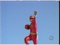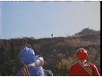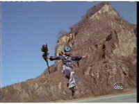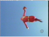 Cuts before he jumps, then cuts follow-ups of each Ranger posing. |