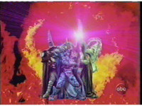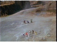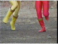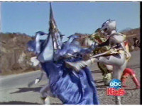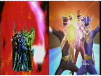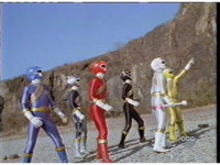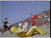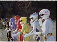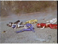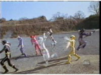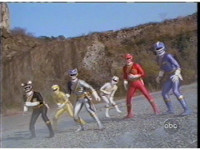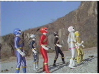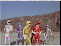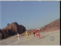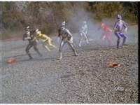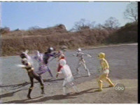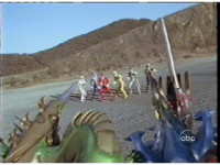 Now in the same location, the six Rangers take on the three Org Generals, all at once. |