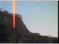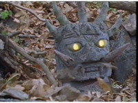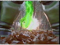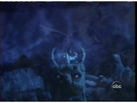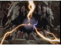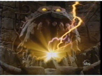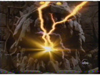 Zoom in on the opened jaws of the Nexus stone head as electricity flows in. |