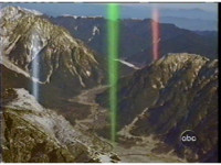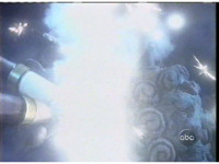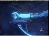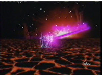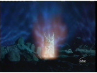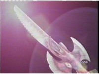 Zoom in on Red as the Rangers react, Mandilok talks out of both mouths, and the Nexus Blade is turned and lowered. As the Nexus Blade glows and shimmers, Mandilok rotates it. |
