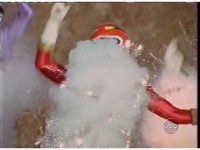 Cuts before White gets up; cuts follow-ups of White fighting Toxica. |