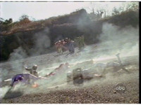 The Rangers fall down on the smoking ground, Red then looking forth. |