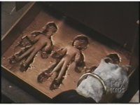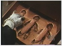 Recycled, but first in original context. Lever pulling shot is cut, as is unused shot of molds heading in while zoom out to Rita talking to Frankie. |