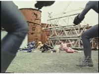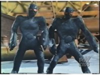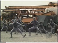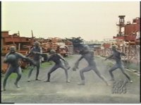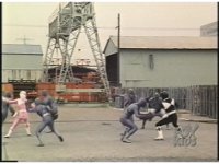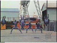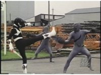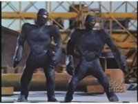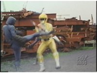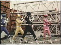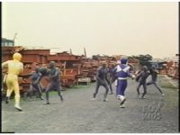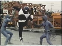 Zoom out from pair of Putties, as Black kicks between them, turns to Axe strike, one blocks, the other kicks him. Black kicks one away, then tries an axe strike on the other, it blocks and sparkily smashes him away. |