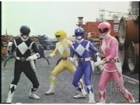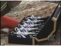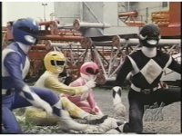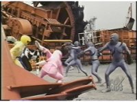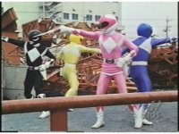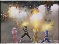 Prior stuff to this cut include the team hopping out of Megazord and shooting these weapons at Frankie. |