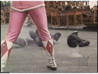 Zoom out as Pink finds herself facing two Putties where one once was, she blocks one's attack, hits the other with Blade, but he avoids and sparkily slashes her with his big hand. |